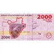 (Translation: Bank of the Republic of Burundi. Two thousand francs. The counterfeiter is punished with penal servitude. Unity, work, progress.)
