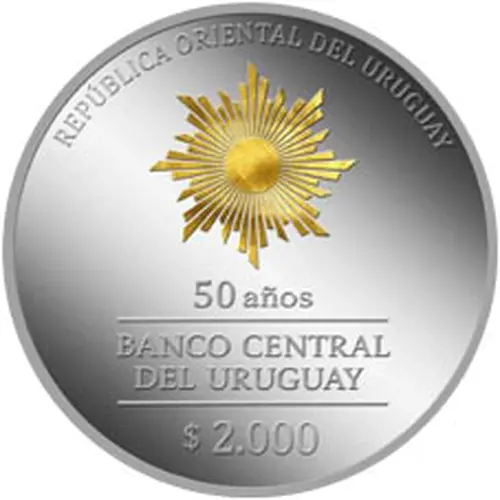 | Legenda do anverso | REPÚBLICA ORIENTAL DEL URUGUAY ------------------------------ 50 AÑOS BANCO CENTRAL DEL URUGUAY --------------------------------- $ 2.000 (Translation: Eastern Republic of Uruguay (Uruguay) 50 years Central Bank of Uruguay $ 2,000) |
