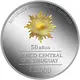 | Descrição do anverso | Golden BCU (Banco Central del Uruguay - Central Bank of Uruguay) isotype, placed on upper half, name of the country on top, 1/4 circle, conmemorated event and face value below. |