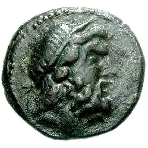 | Mô tả mặt trước | Diademed head of Zeus facing right |