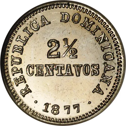 | Légende de l’avers | REPUBLICA DOMINICANA 21/2 CENTAVOS 1877 |
