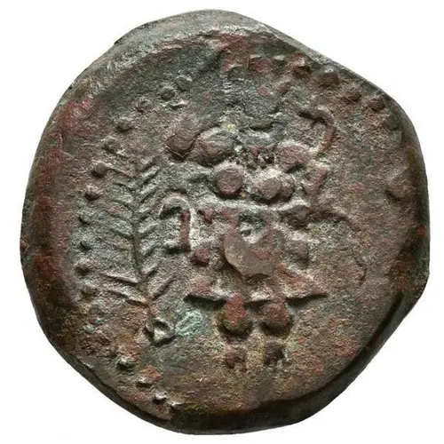 | توضیحات روی سکه | Squatting Kabeiros facing, holding hammer with right hand and serpent with left hand; palm in field to left. |