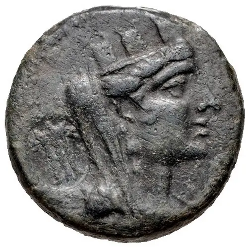 | توضیحات روی سکه | Veiled and turreted bust of Tyche right and tripod within oval incuse |