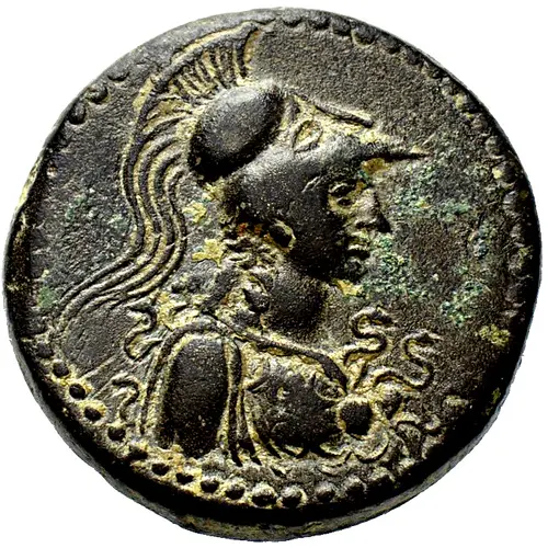 | Aversbeschreibung | Helmeted and draped bust of Athena right, wearing aegis |