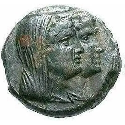 | Descrizione del dritto | Jugate veiled heads of Demeter and Kore right, wearing wreaths of corn. |
