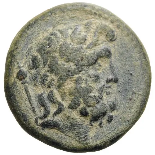 | Beschrijving voorzijde | Laureate head of Zeus to right and behind, scepter |