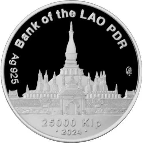Obverse lettering Bank of the LAO PDR Ag 925 ММД 25000 Kip 2024