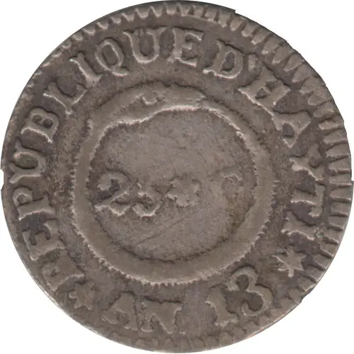 | Legenda do anverso | REPUBLIQUE D`HAYTI 25*C *AN XI* (Translation: Republic of Haiti Year 11) |