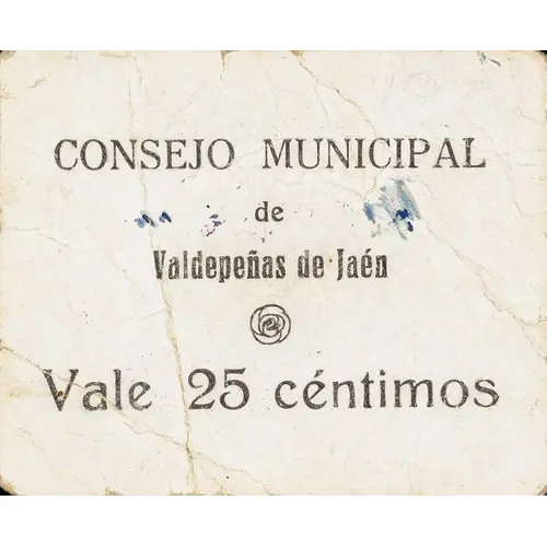 (Translation: Municipal Council of Valdepeñas de Jaén It`s worth 25 Centimos)