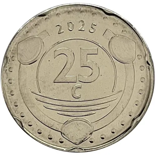| توضیحات روی سکه | Three Favoured Tellin shells (Arcopagia fausta) separated by 10 pearls surrounding denomination in center |