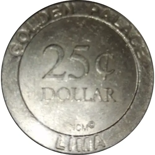 | Leyenda del anverso | GOLDEN PALACE 25¢ DOLLAR NCM (C) LIMA |