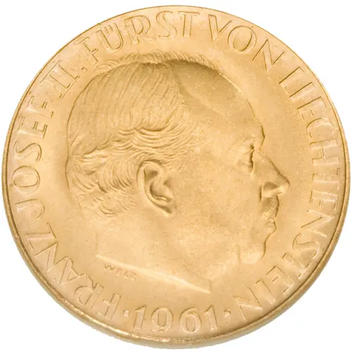 | Opis líce | FRANZ JOSEF II. FÜRST VON LIECHTENSTEIN WELZ ·1961· (Translation: Franz Josef II. Prince of Liechtenstein) |