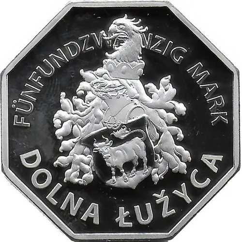 Opschrift voorzijde FÜNFUNDZWANZIG MARK DOLNA ŁUŽYCA