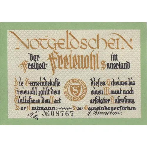 | صادرکننده | Municipality of Freienohl (Prussian province of Westphalia) |