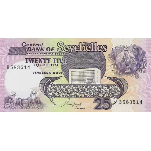 CENTRAL BANK OF Seychelles LABANK SANTRAL SESEL Twenty Five RUPEES |