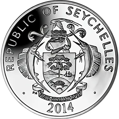 | Ön yüz lejandı | REPUBLIC OF SEYCHELLES FINIS CORONAT OPVS PM 2014 (Translation: The End Crowns the Work) |