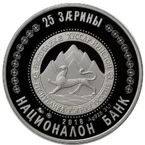 | 正面铭文 | 25 ЗÆРИНЫ РЕСПУБЛИКӔ ХУССАР ИРЫСТОН РЕСПУБЛИКА ЮЖНАЯ ОСЕТИЯ ММД 2018 Ag 925 31,1 НАЦИОНАЛОН БАНК (Translation: 25 Zarin Republic of South Ossetia MMD 2017 Ag 925 31,1 National Bank) |