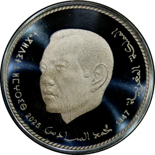 (fr) Tête de Mohammed VI à gauche entourée de la légende. |