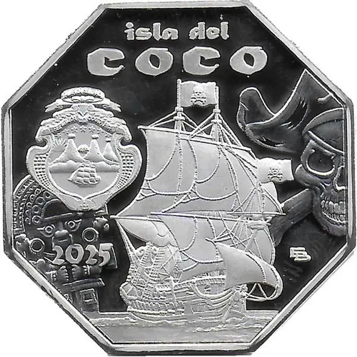 | Obverse description | Coat of arms of Costa Rica Pirate Sailing Ship. Date. ВБ - VB, Vitaly Bakhtinov. |