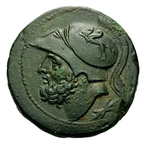 | Obverse description | Helmeted head of Ares left, griffin on helmet and below neck, thunderbolt |