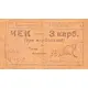 | Obverse lettering | (Translation: Cooperative `POMOSHCH` (`Help`) CHECK for 3 karbovantsiv (three karbovantsiv) Series G Chairman of the Board of Directors (signature) No. 3710 Not valid without the cooperative stamp) |