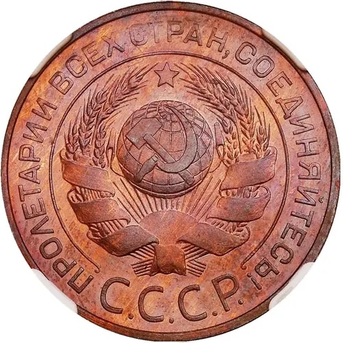 | Legenda awersu | ПРОЛЕТАРИИ ВСЕХ СТРАН,СОЕДИНЯИТЕСЬ! С.С.С.Р. (Translation: Workers of the world, unite! USSR) |