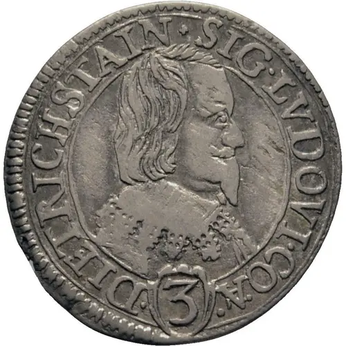 | Popis líce | Portrait facing right in a circle, value below in a frame. Legend (starts 12h) for `Sigismundus Ludovico Comes Ab Dietrichstein` |