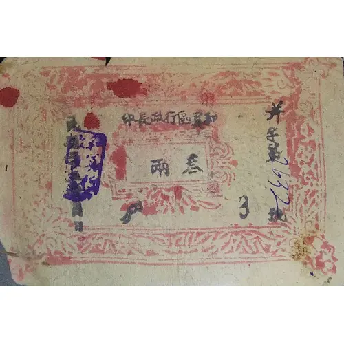 | Obverse description | Pink ink stamped design with black ink stamped characters. |