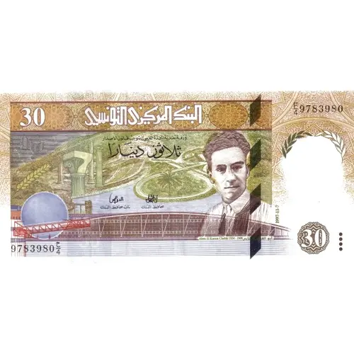 البنك المركزي التونسي ثلاثون دينارا (Translation: Central Bank Of Tunisia Thirty Dinars) |