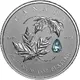 Set against a matte field, the reverse design features two sugar maple (Acer saccharum) leaves floating in the wind and positioned in a way that suggests a circular motion. The engraved design is embellished with a 0.23-carat, AAA-grade, pear-shaped, rose-cut aquamarine gemstone, which stands in for a sparkling water droplet. |