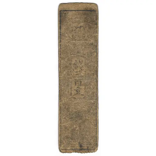 | نوشتههای روی اسکناس | 銀 三 百 文 萬 代 不 易 (Translation: Silver 300 Mon) |