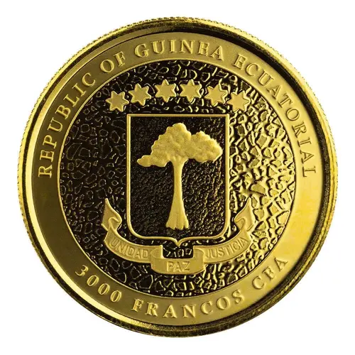 | Legenda del dritto | REPUBLIC OF GUINEA ECUATORIAL UNIDAD PAZ JUSTICIA 3000 FRANCOS CFA (Translation: The Republic of Equatorial Guinea Unity Peace Justice) |