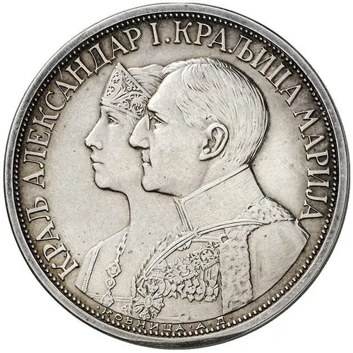 | نوشتههای روی سکه | KRALJ ALEKSANDAR I. KRALJICA MARIJA КОВНИЦА А.Д. (Translation: King Aleksander the first, queen Marija. Mint A.D.) |