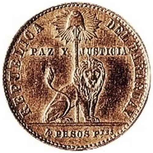 REPUBLICA DEL PARAGUAY PAZ Y JUSTICIA 4 PESOS Ftes (Translation: Republic of Paraguay Peace and Justice 4 Pesos Fuertes) |