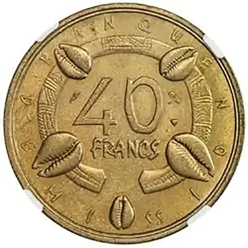 | نوشتههای روی سکه | BANQUE D EMISSION 40 FRANCS (Translation: Issuing bank) |
