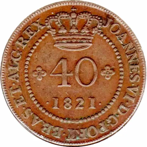 | 正面铭文 | JOANNES.VI.DG.PORT.BRAS.ET.ALG.REX 40 1821 (Translation: John VI, by Grace of God, King of Portugal, Brasil and Algarve) |