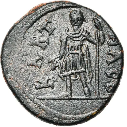 | Description de l’avers | Soldier standing while holding spear and surrounded by legend. |