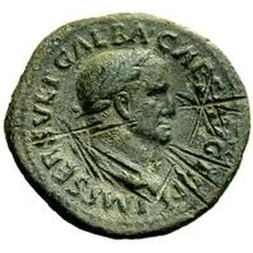 | Opschrift voorzijde | IMP SER GALBA CAES AVG TR P XLII (Translation: Imperator Servius Galba Caesar Augustus Tribunicia Potestate Emperor Servius Galba, Caesar, August invested with Tribunician Power) |