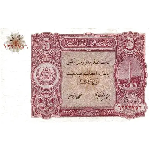 | Valeur | 5 Afghanis (أفغاني) (5 AFA) |