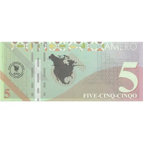 | Opis rubu | USA CAN MEX NAU CURRENCY OF THE NORTH AMERICAN UNION COMMERCIAL ZONE 5 AMERO |