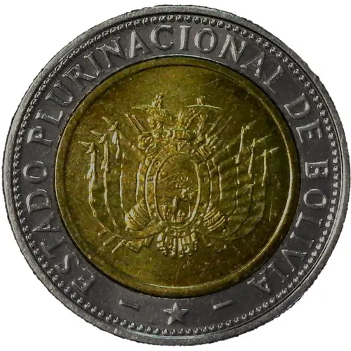 | Opis líce | ESTADO PLURINACIONAL DE BOLIVIA (Translation: Plurinational State of Bolivia) |