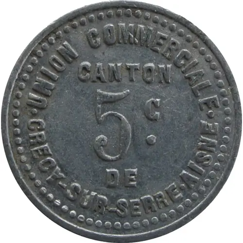| Legenda awersu | · UNION COMMERCIALE · CANTON 5ᶜ· DE CRECY-SUR-SERRE·AISNE |