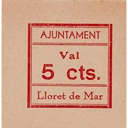 | Obverse lettering | AJUNTAMENT Val 5 cts. Lloret de Mar (Translation: City Council It`s worth 5 Centimos Lloret de Mar) |
