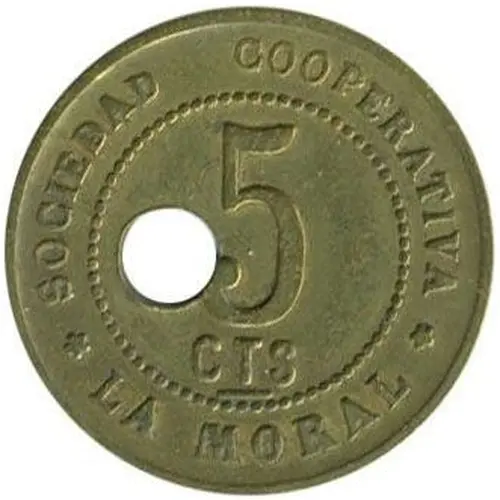 | Opis líce | SOCIEDAD COOPERATIVA LA MORAL 5 CTS (Translation: Cooperative Society) |