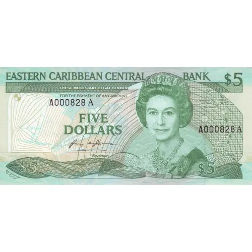 | Obverse lettering | EASTERN CARIBBEAN CENTRAL BANK FIVE DOLLARS |
