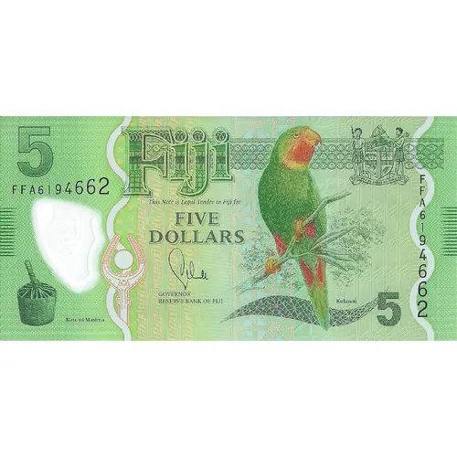 Fiji This Note is Legal Tender in Fiji for FIVE DOLLARS GOVERNOR RESERVE BANK OF FIJI Kato ni Masima Kulawai |