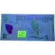 Overall colour of the banknote is green. A Kulawai is perched on a branch with the arms of Fiji on the right. On the left, the image of an indigenous Fijian is in a clear window and a salt basket stands to the lower left. Novel numbering on both serial numbers. |