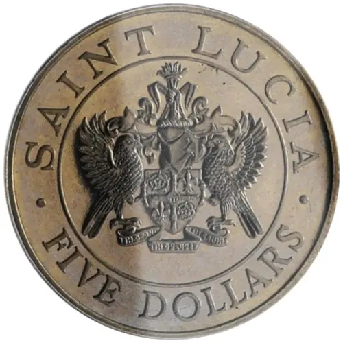 | Надписи аверса | · SAINT LUCIA · THE·LAND THE·PEOPLE THE·LIGHT FIVE DOLLARS |