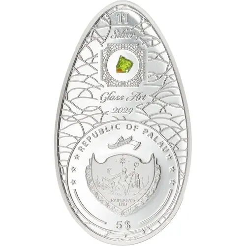 | Leyenda del anverso | TH Silver Glass Art 2024 REPUBLIC OF PALAU RAINBOW`S END 5$ |