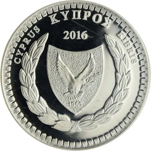 The emblem of the Central Bank of Cyprus with a semi-circular inscription on the upper part from left to right of the words “CYPRUS”, “ΚΥΠΡΟΣ” and “KIBRIS” and the year “2016”. |